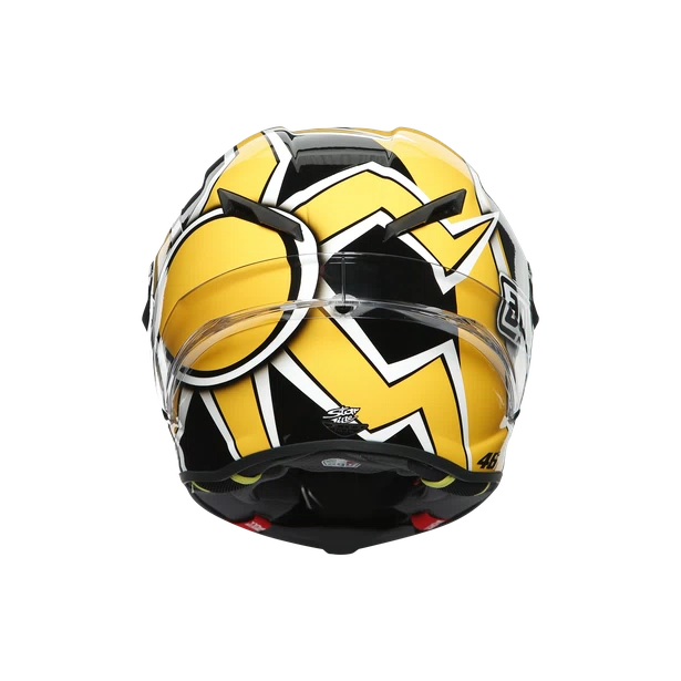 With collaboration from Starline’s designer Roberto Marchionni, Valentino proposed a new look for his distinctive symbols, the sun and the moon. The two icons are on the sides of the shell as always, with different colors. Then there’s the small number 1 on the front, just under the AGV logo.